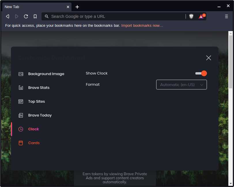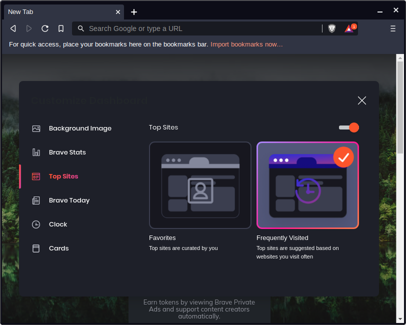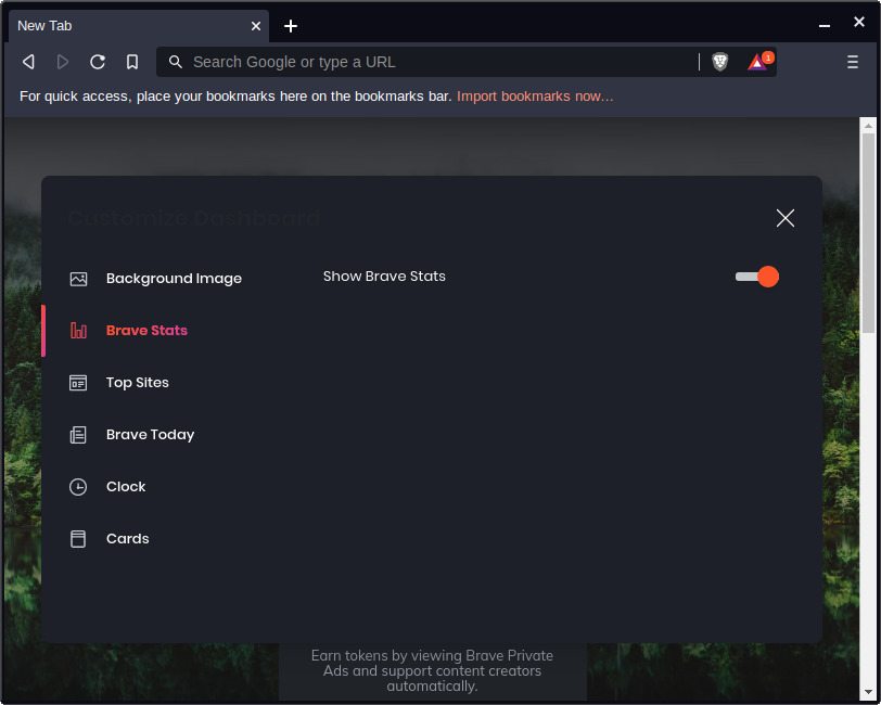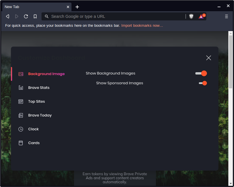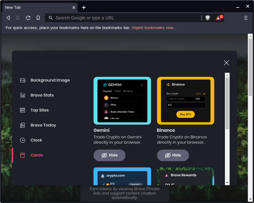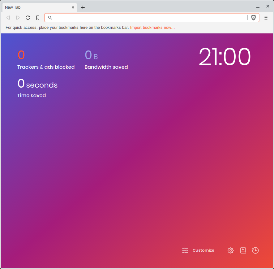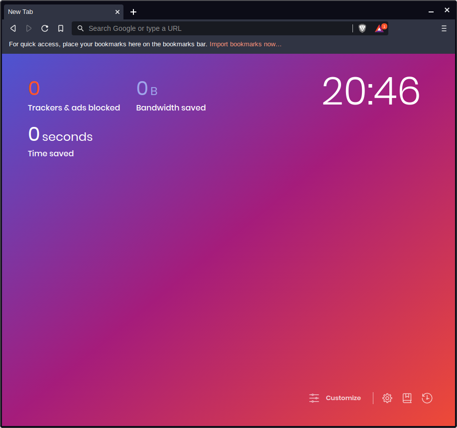 The default homescreen of Brave is nice, but it may be a little overkill for some folks. Click on Customize in the lower right corner.