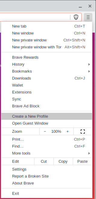 Let’s create a profile in Brave. Go to the “Three-Bar” Menu (≡) > Create a New Profile.