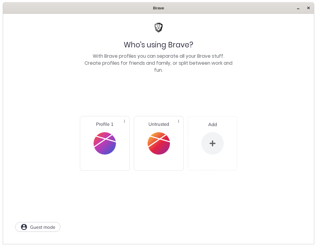 Because Brave Browser is based on Chromium (the open source base of Google Chrome), Brave Browser also inherits one of Chromium’s best features: the ability to create multiple browser profiles.