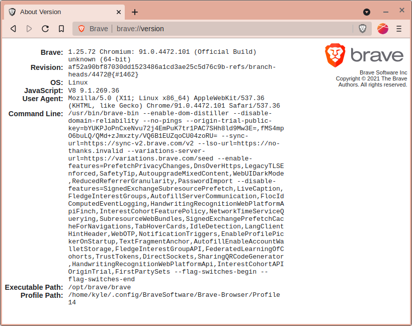version information in most web browsers. In Brave it translates to