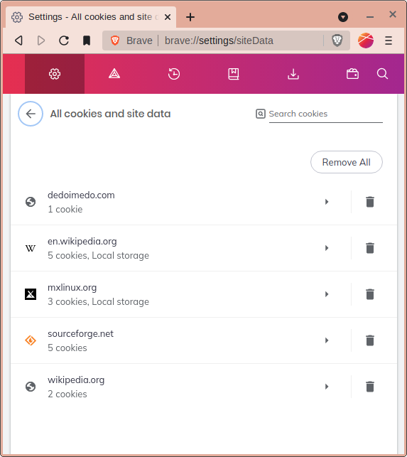you can remove an individual site’s cookies immediately by clicking the trash